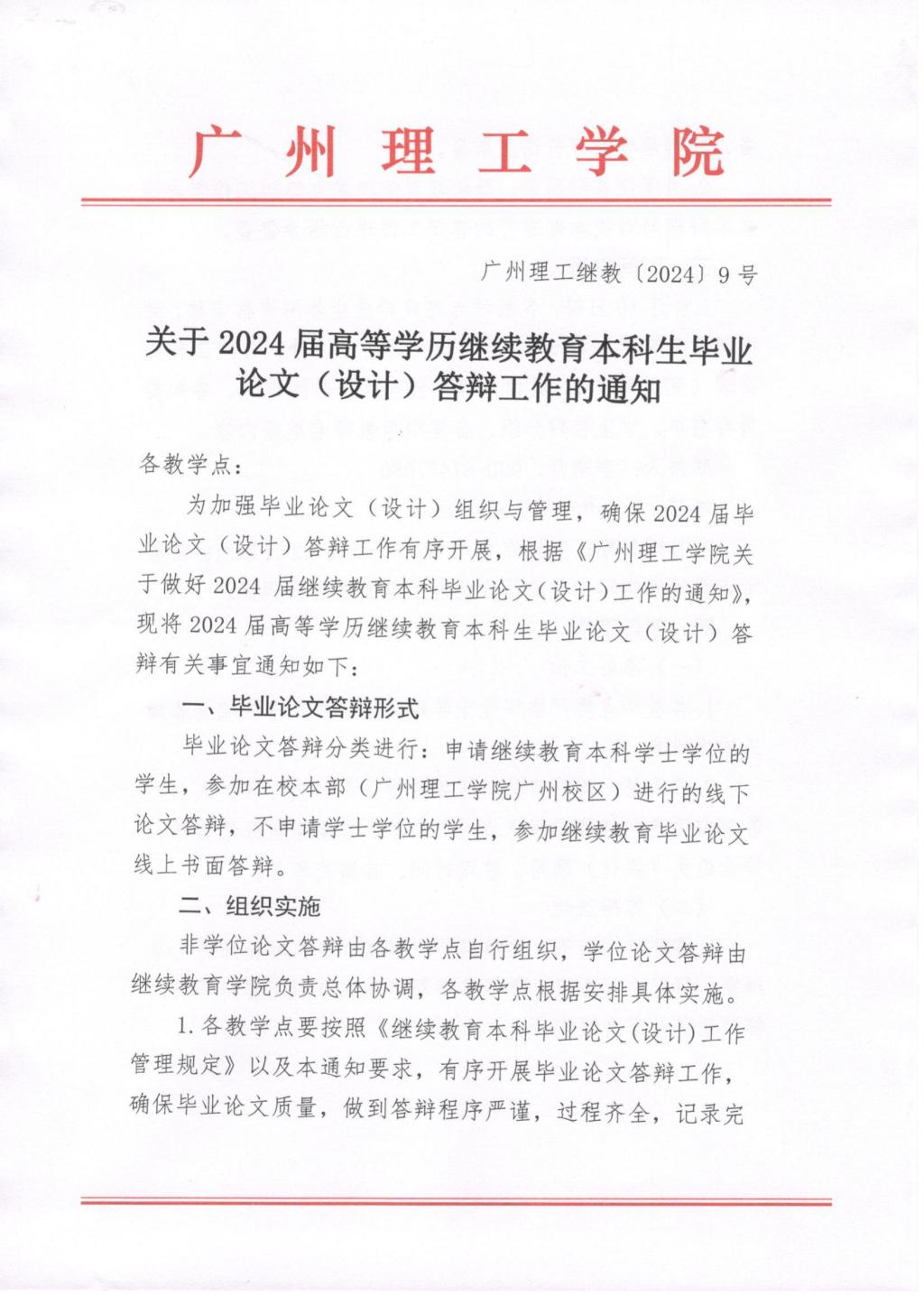 关于2024届高等学历继续教育本科生毕业论文(设计)答辩工作的通知