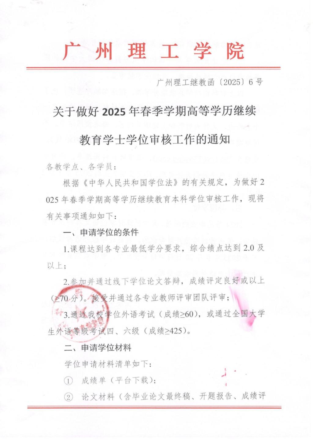 关于做好2025年春季学期高等学历继续教育本科学位审核工作的通知