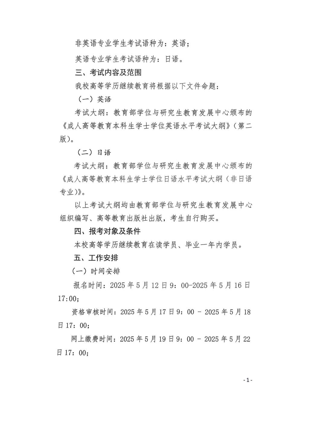 关于2025学年春季学期高等学历继续教育学士学位外语水平考试报名工作的通知