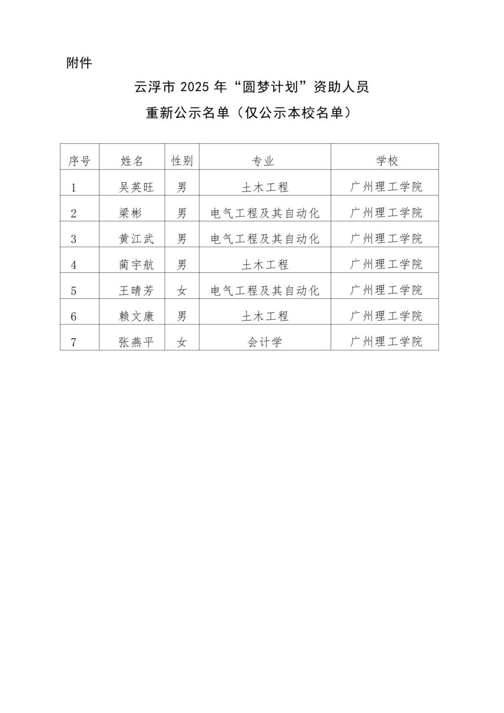 2025年圆梦计划—云浮市“百千万工程”青年职业技术人才培养项目获资助人员重新公示