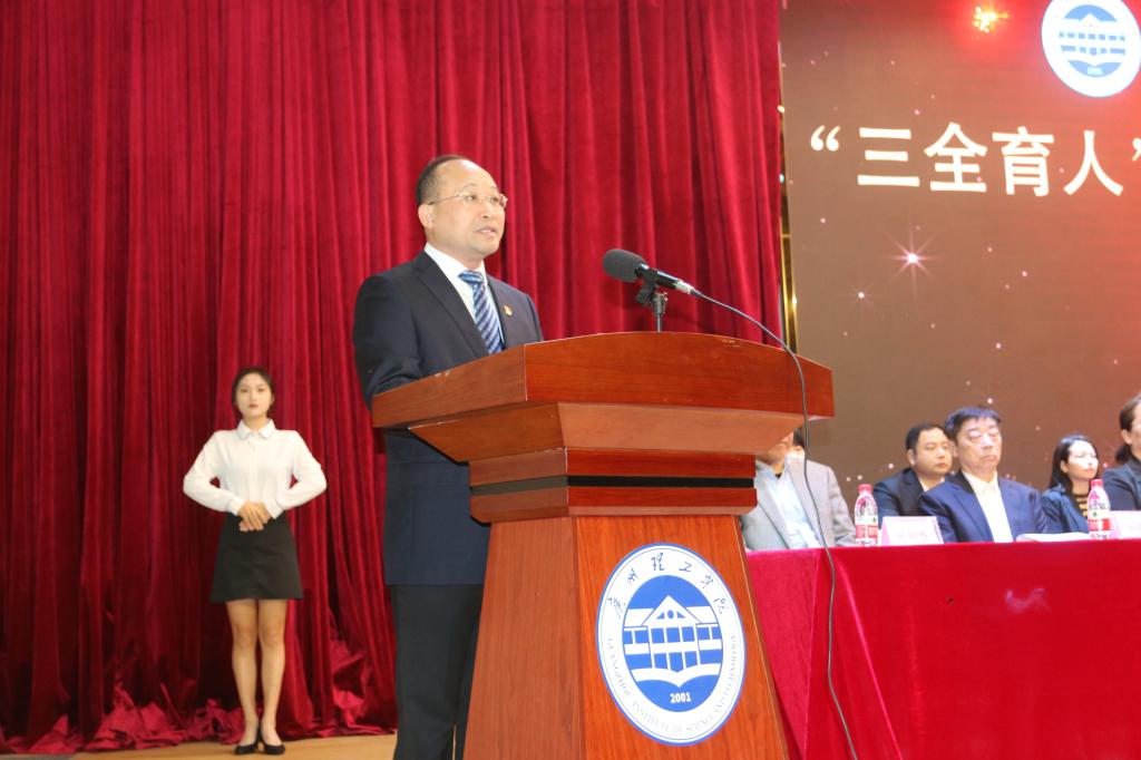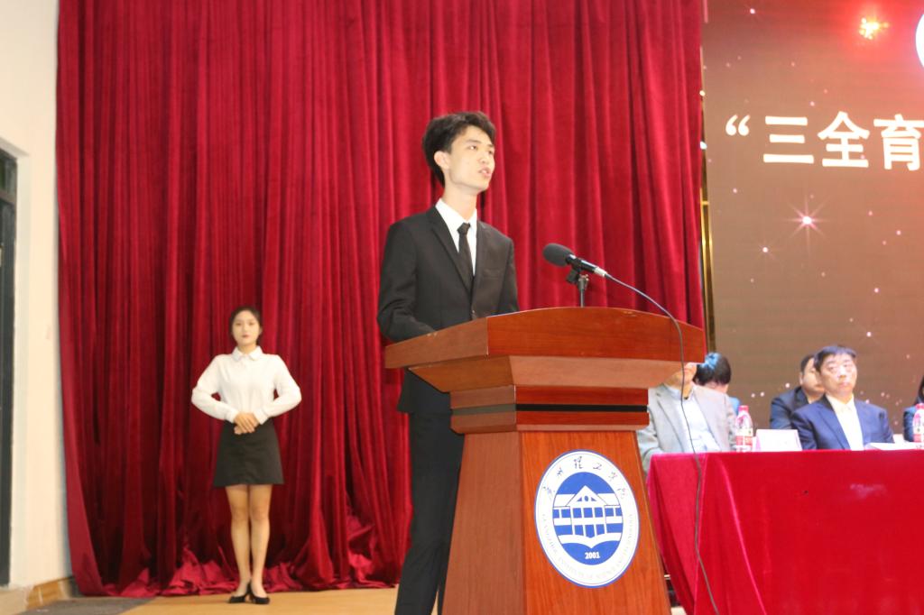 黄圣诚书记致开幕词并指出,学校以“三全育人教育周”为载体,全面推进全员育人、全过程育人、全方位育人,精心打造“三全育人”工作品牌,将每学期第11 周设立为三全育人素质教育周,学校和二级学院层面相结合,教师、学生一体化活动相结合,学术专业活动和素质教育相结合,校内校外资源利用相结合,搭建三全育人“立交桥”,全面推进学生思想品德、文化涵养、科技创新、体育锻炼、劳动养成、自我管理等全面发展,培养德智体美劳全面发展的社会主义建设者和接班人。