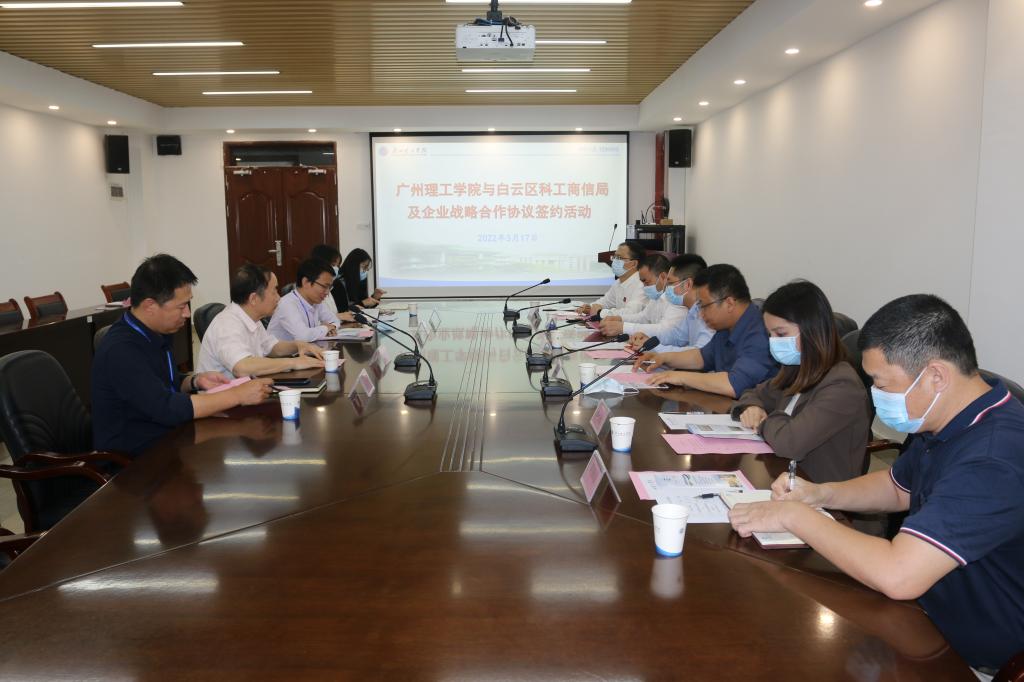 彭彬科长指出,williamhill威廉希尔作为白云区高等院校,要坚持资源共享、优势互补、互利共赢的原则,推动高校和企业在科技成果转化、技术改造、智能生产等方面的合作和交流,整合资源,合理对接,服务白云,共同发展。