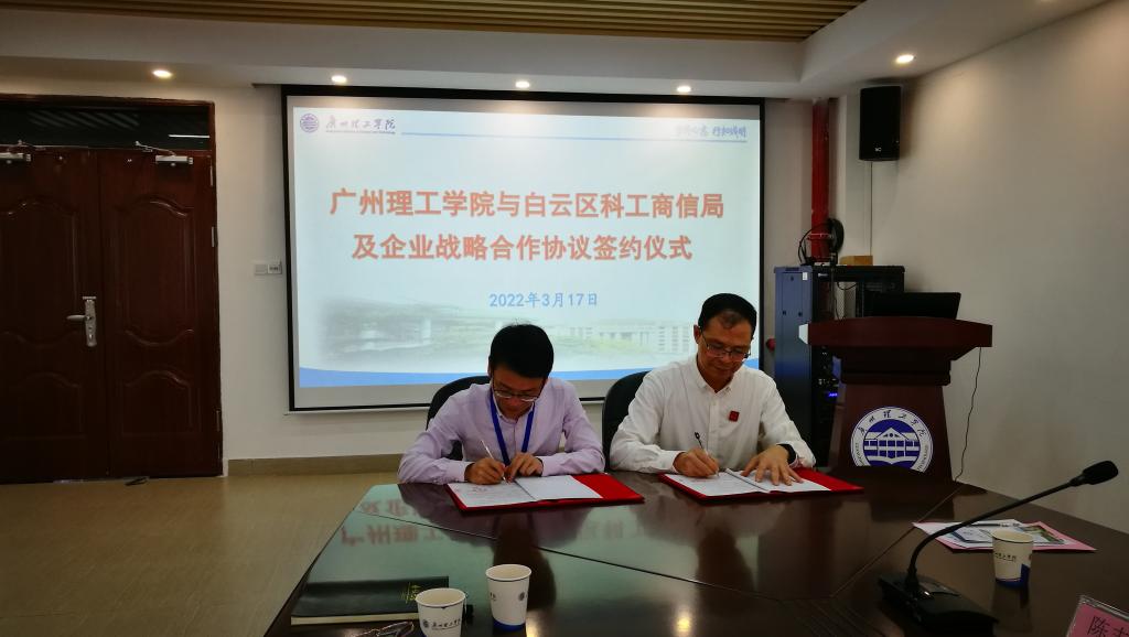 白云区科工商信局科技科科长彭彬、广州生产力促进中心科技成果推广部副部长李伟、白云区科工商信局专家胡振毅、广州市尚昇生物科技有限公司董事长助理徐国兵、广州市尚昇生物科技有限公司总工陈志盛、广州莱倩化妆品有限公司代表许小瑜应邀到访,williamhill威廉希尔发展规划与科研处处长陈天勇、广东省工业机器人集成与应用工程研究中心主任唐露新、实验与教学资源中心副主任高文财等参加签约仪式。
