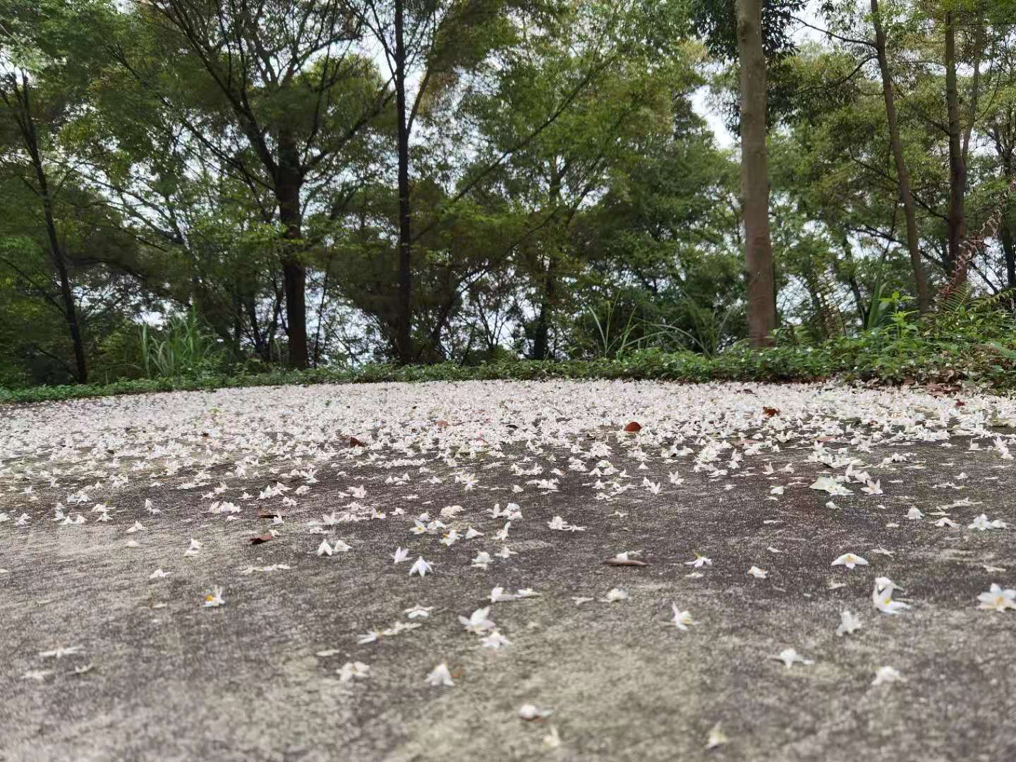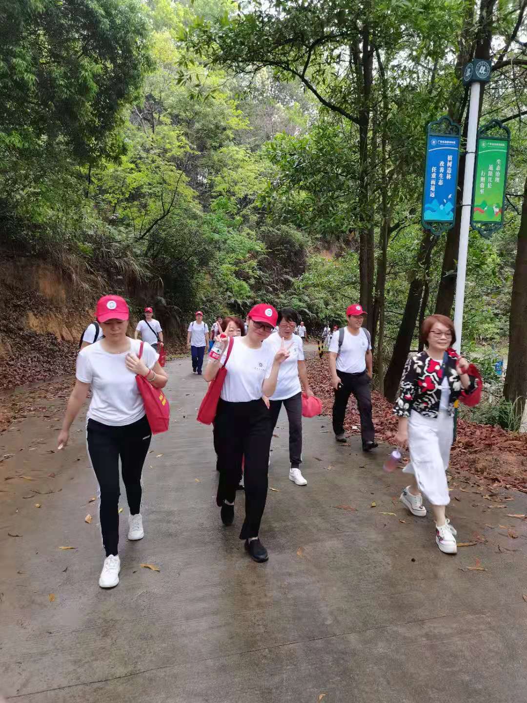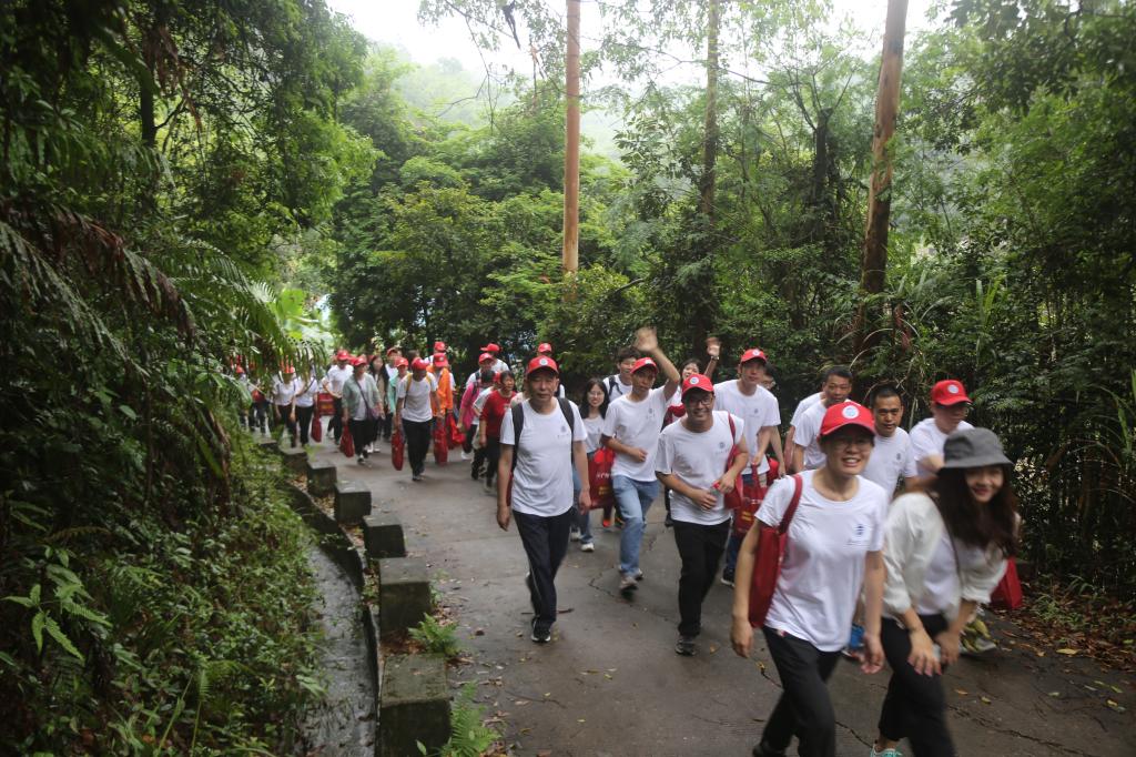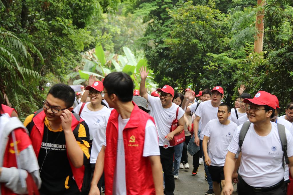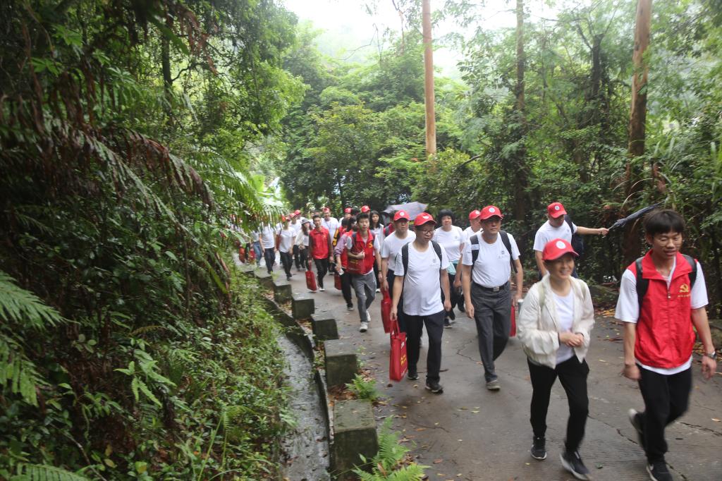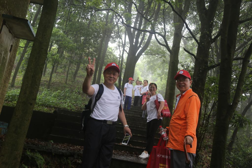 雨后的登山小道一尘不染,宁静、安全。一路上,大家听着帽峰山上东江纵队英勇的抗战故事,唱着高亢的红歌,有说有笑,互相扶持,努力前行。抗日战争时期,我们党组织和领导的多支游击队驻扎在帽峰山麓。广州东北郊人民游击队也创建于此,这支抗日救亡游击队充分利用帽峰山的地形优势,与我们党领导的游击队通力配合、出奇制胜。我们奋力前行,闻青草芬芳,看落英缤纷,听鸟鸣春涧,感受着轻寒薄暖,追寻历史根脉、感悟初心使命。