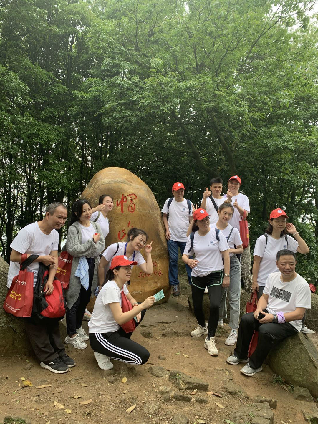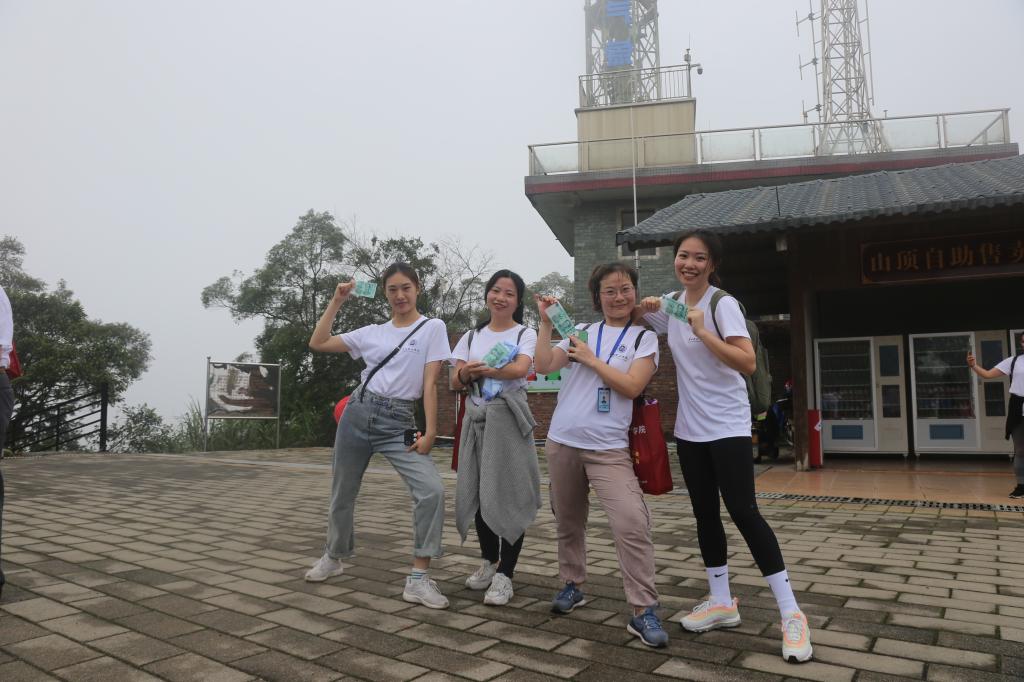 经过3个半小时的徒步,大家终于全部成功登顶。工会副主席彭洁带领财务处的同事早早就在山顶等候大家,为成功登顶的每个教职工发放彩蛋——现金大奖!
