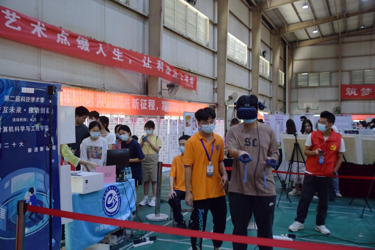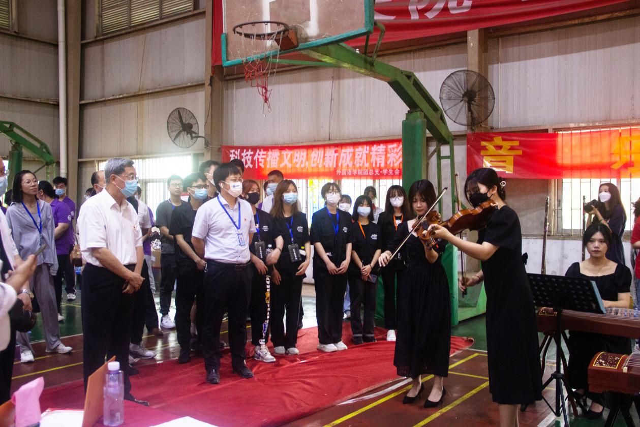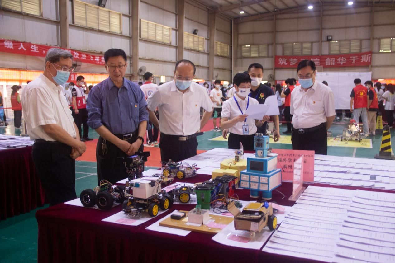 在展示区,智能制造与电气工程学院的机器人、建筑工程学院的“田园小别墅”建筑模型、计算机科学与工程学院的校园VR漫游互动软件、工商管理学院的“小茶团队”、经济管理学院的文创吉祥物“小貅”、外国语学院的手工艺品、音乐舞蹈学院的器乐表演、艺术设计学院的客家文创产品等项目,受到领导、师生的高度评价。