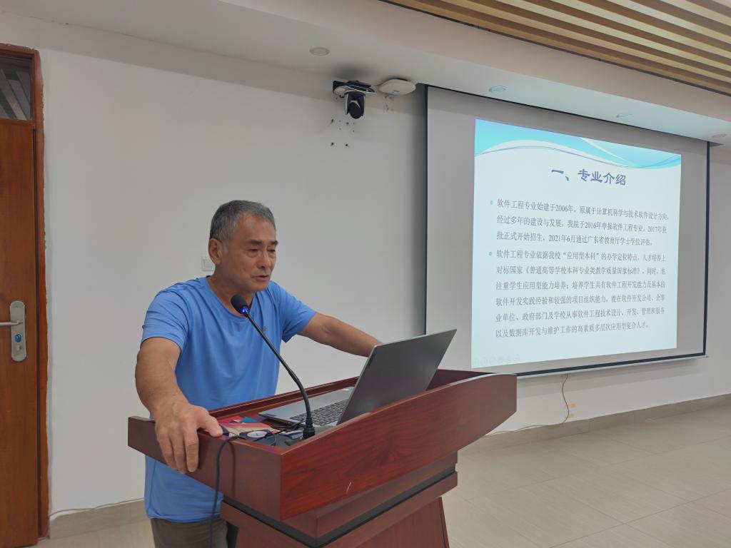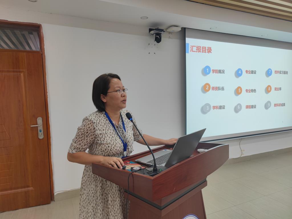 常务副校长伏焕昌致欢迎辞并介绍学校基本情况,介绍了学校环境、办学条件、人才培养模式、成果特色和发展规划愿景。计算机科学与工程学院院长原峰山、经济管理学院常务副院长李美珍分别介绍了“软件工程”“会计学”专业建设情况。