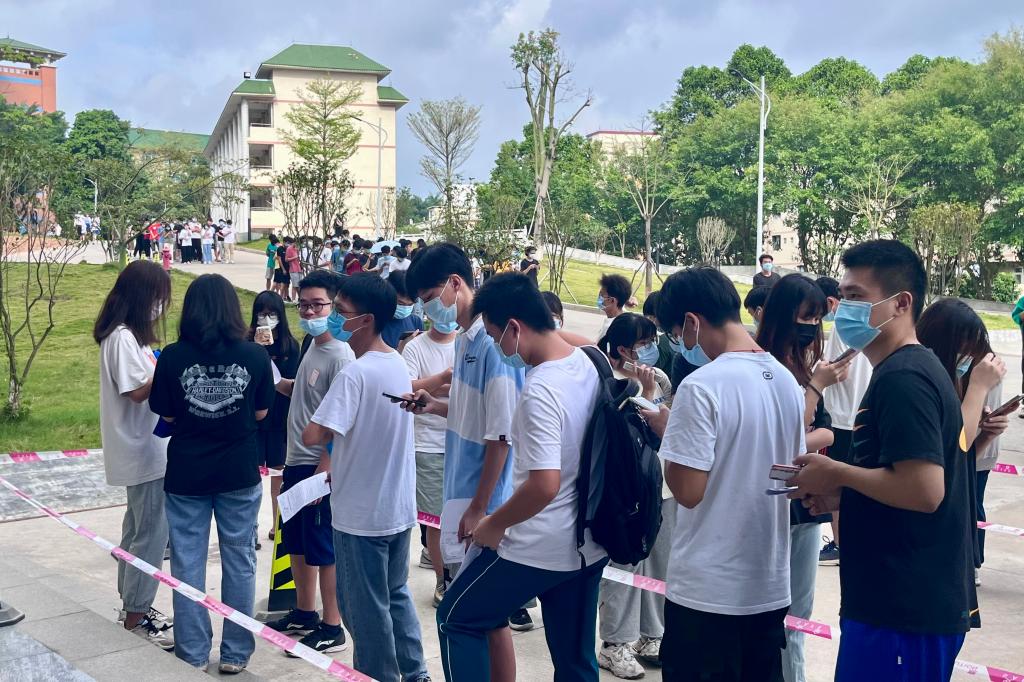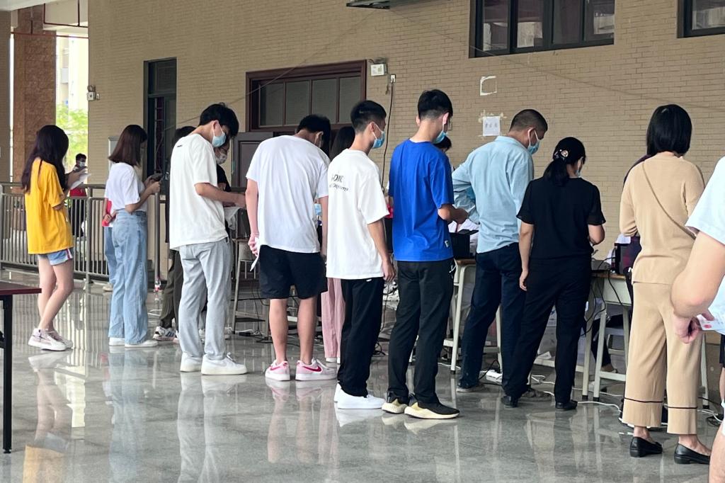 师生们有序排队
