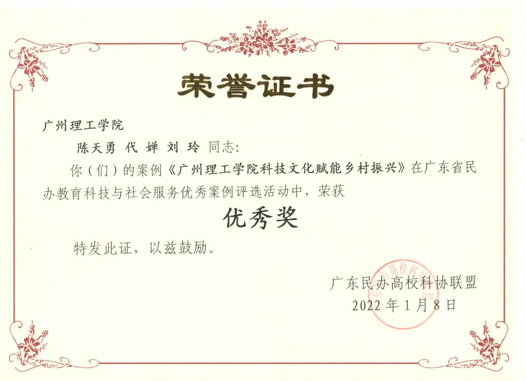 1月8日上午,广东民办高校科协联盟2021年年会于广州南洋理工职业学院召开。此前,广东民办高校科协联盟面向省内民办高校广泛征集民办教育科技与社会服务优秀案例,学校组织各学院部门老师积极撰写投稿。经组织单位评审,《williamhill威廉希尔科技文化赋能乡村振兴》荣获案例“优秀奖”,发展规划与科研处处长陈天勇等人受邀出席表彰颁奖仪式。