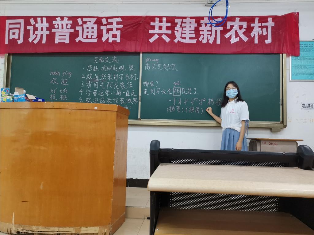 “童心童语 筑梦中华”社会实践调研团队在做好疫情防控的前提下,鼓励学生争当推普员,宣传推普知识,以传唱红色歌曲、诵读红色经典、到当地红色景点学习革命先烈事迹等方式,帮助学生提高语言交际能力,启发大家传颂红色歌曲和经典的意义,引领广大同学在推普的过程树立坚定信仰。支教结束后,团队开展以“传颂红色文化,我为华夏推普”为主题的歌唱和朗诵比赛,营造良好的社会推普宣传氛围,助力铸牢中华民族共同体意识。