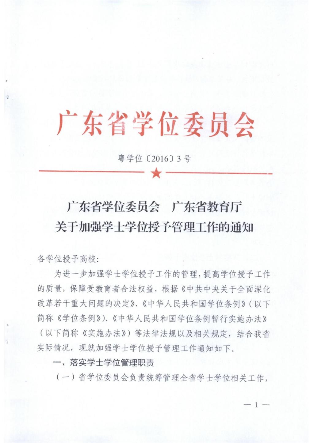 广东省学位委员会广东省教育厅关于加强学士学位授予管理工作的通知